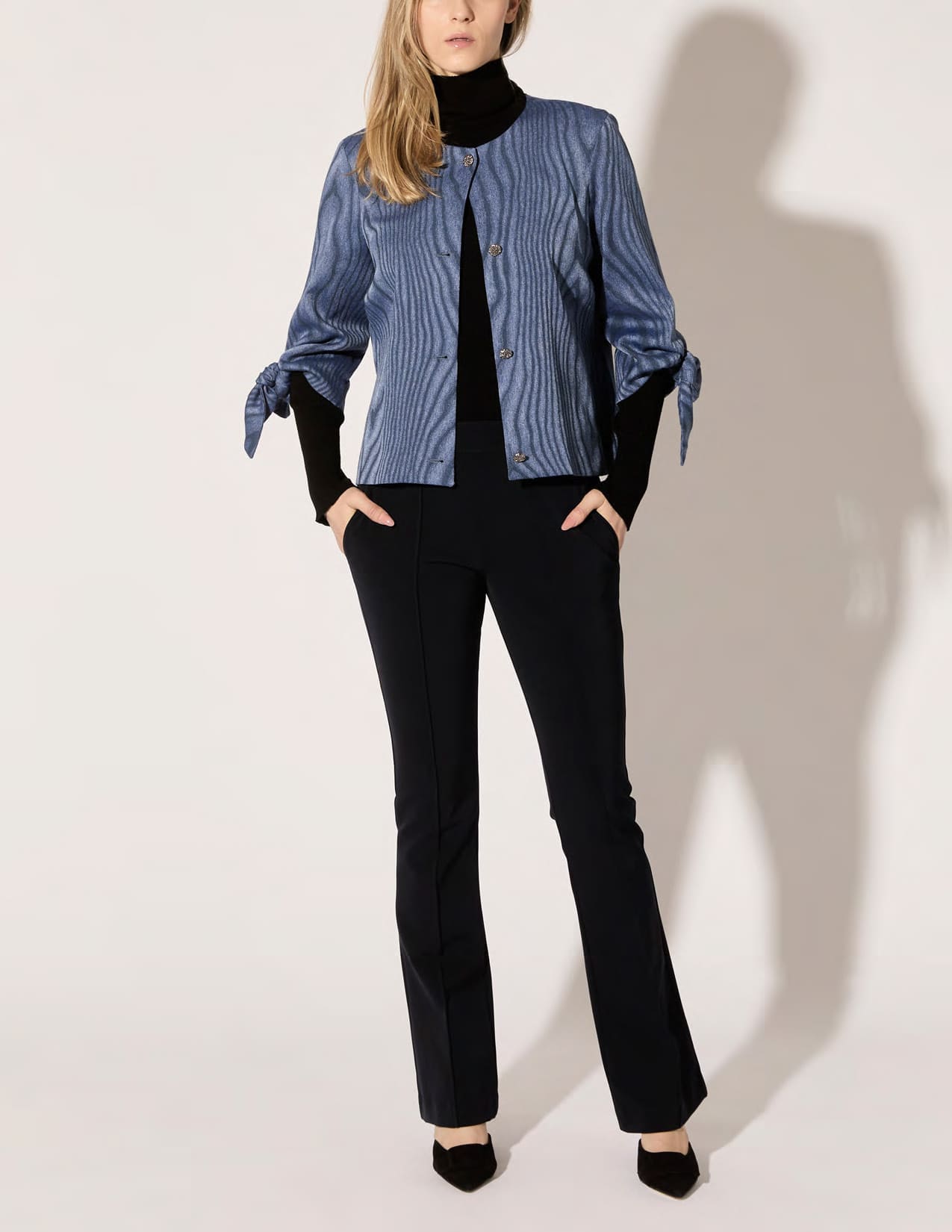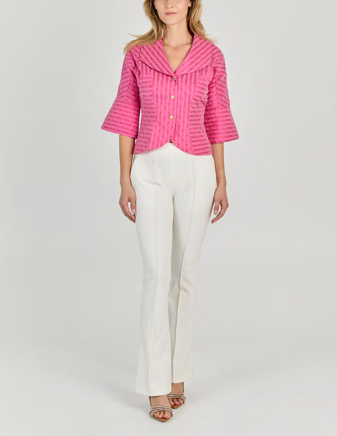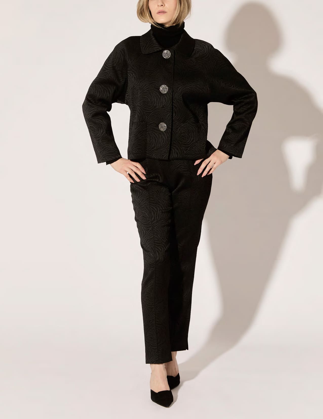 Hilton, an inveterate traveler, gathers inspiration from people and places around the globe, but his creativity is fully ignited by something much closer to home, his clients. “I listen to their feedback when they try on pieces from the collection, which not only sparks new ideas, but also deepens my understanding of what they want. Real women, who choose to wear my clothes in their real lives, teach me the most. Providing what they need is the best reward.”